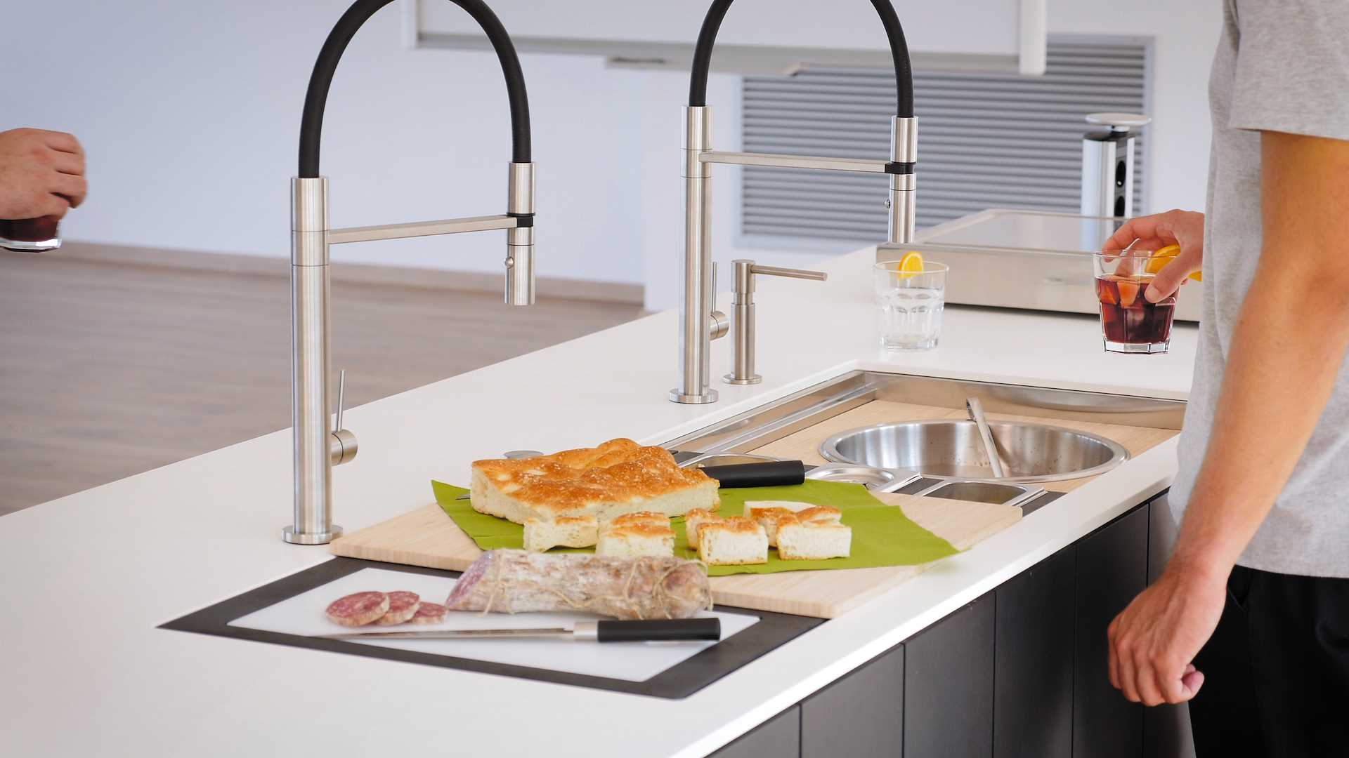 Happyhour系列将水槽的定义推向了新的视野。凭借着其强大的配件系统,它是您聚会、前菜或点心餐的焦点,同时也是真正厨师的完美工作站,能够使多层配件随意的出现和隐藏。HappyHour在其基本配置上配备了砧板和实用的黑色网格架。
