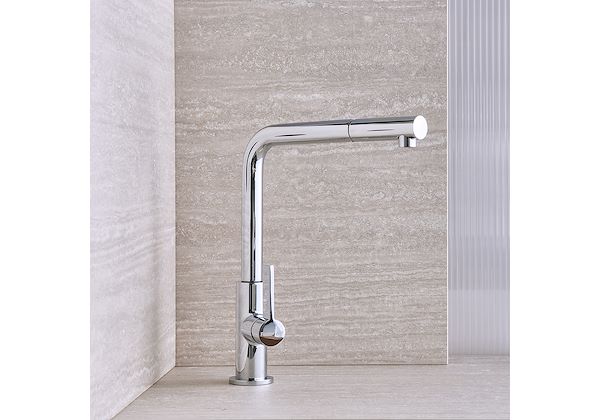 带可提取淋浴的单杠杆混合器水龙头。采用 AISI 316 不锈钢制成。