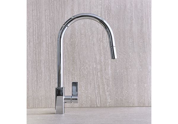 带旋转桶和可提取淋浴头的单杠杆搅拌器水龙头。
