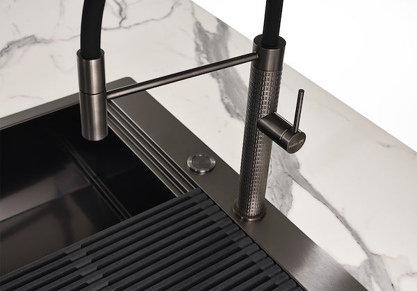 双龙头孔龙头安装区配备了两个龙头安装孔。在第二个孔中,可以安装自动排水管的遥控器,或者,一个实用的肥皂分配器。